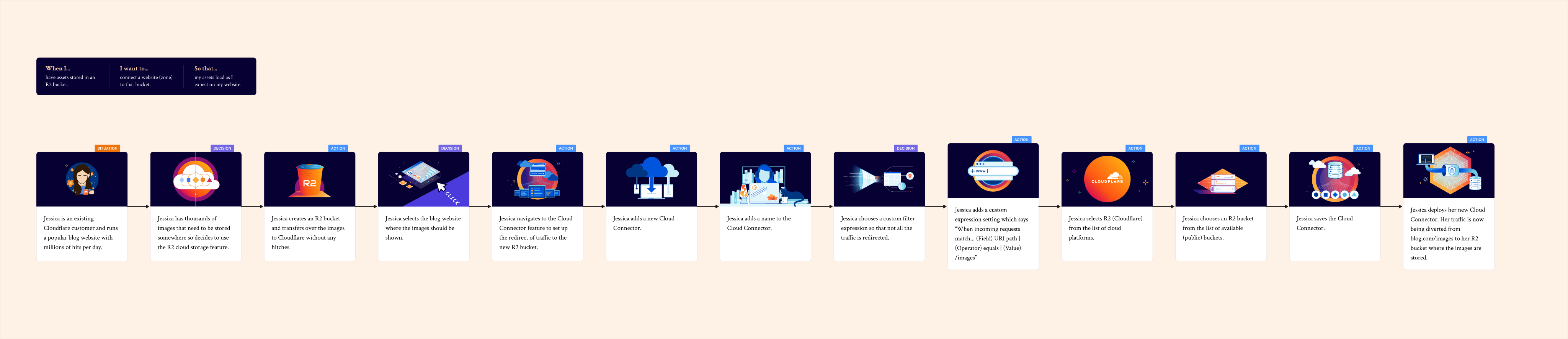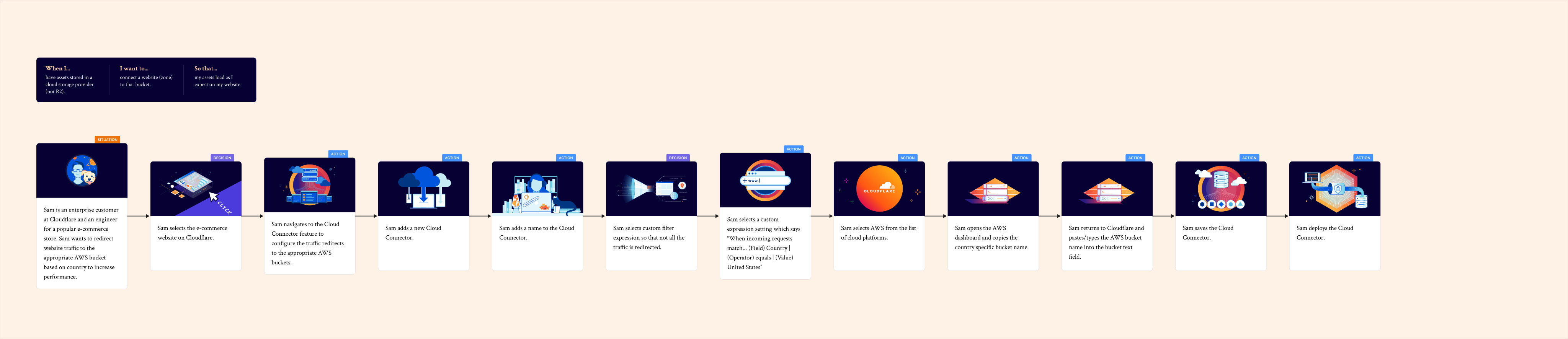 This type of exploration wasn’t part of the usual ways of working at Cloudflare. However I felt it was important, especially as someone new to the business, to better understand the path of the customer. I created a pack in Figma so that the team could continue to use this user story method after I left.